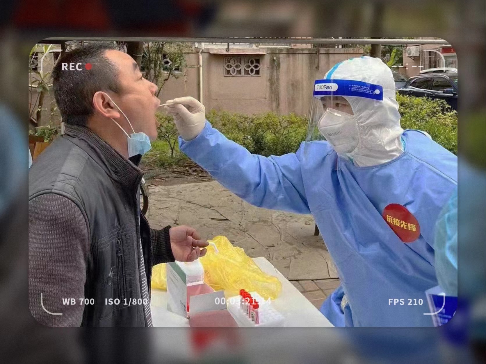 面对强度大,风险高的核酸采样工作,他们未曾退缩,而是充分发挥了不怕吃苦、奋勇向前的大无畏精神,以每日数小时以上的默默坚守践行着医者誓言,用汗水守护人民!